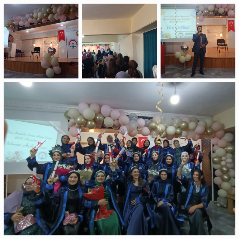 Okulumuz dördüncü mezunlarını verdi. 2021 yılında açılan okulumuz kısa zamanda ilçemizde her türlü etkinlikleriyle, başarılarıyla adından söz ettirdi. Mezun öğrencilerimiz için muazzam bir program hazırladık. Kızlarımızda liseyi bitirmenin sevinci, okuldan ayrılmanın hüznü vardı. Öğrencilerimize bundan sonraki hayatlarında sağlık, mutluluk ve başarılar diliyoruz. Yolunuz ve bahtınız açık olsun sevgili öğrencilerimiz.